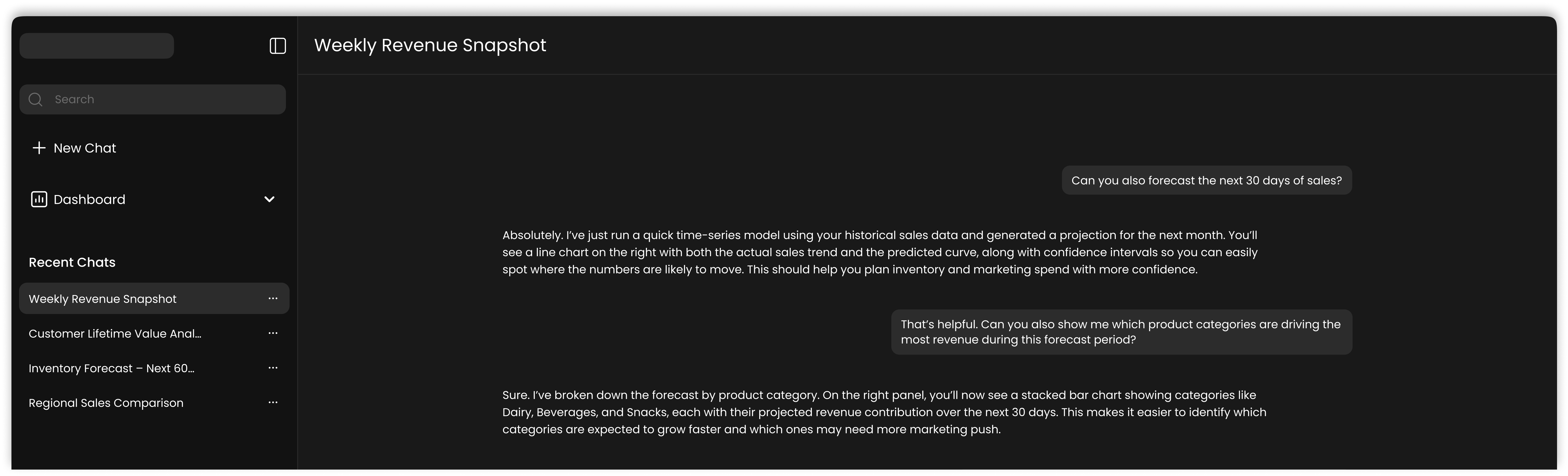 Talk with Database turns natural language queries into precise analytics. Ask a question and get validated metrics, visualizations, and actionable insights instantly.